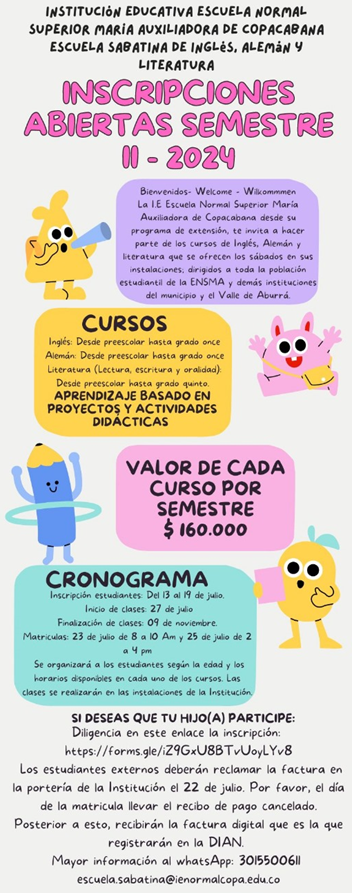 Escuela Sabatina, Inglés, Alemán y Literatura